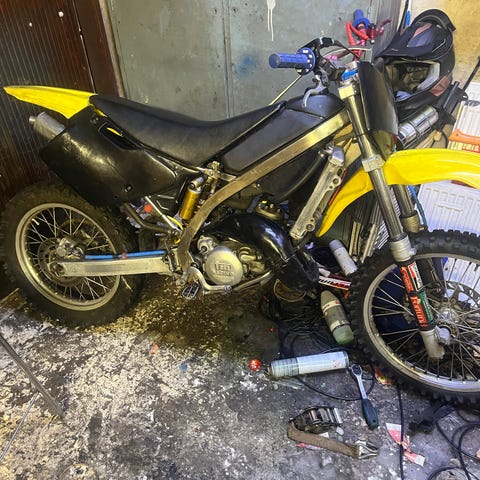 Eli tuommoinen vanhemman mallin temmin kone ois jouten. Staattori rikkinäisenä tämä myytiin mulle enkä jaksanut alkaa tutkimaan enempää kun näköjään tiivistemassalla kasattu yläkerta. Vanha omistaja myös sanoi että 15h ajettu mäntä ja joitain alakerran osia vaihdettu. Kuitenkin itse avaisin yläkerran ennenkö ajoon ottaisin. Kiksi uupuu myös.