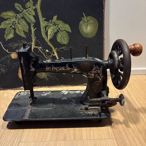 Singer ompelukone musta. Perinteinen mekaaninen pöytämallinen ompelukone koristeellisilla kuvioilla. Soveltuu perusompeluun ja mahdollisesti myös keräilykäyttöön. Käyttö vaatii käsikäyttöisen kammen pyörittämistä. Kone on kiinnitetty puiseen alustaan, joka helpottaa siirtämistä ja säilytystä.