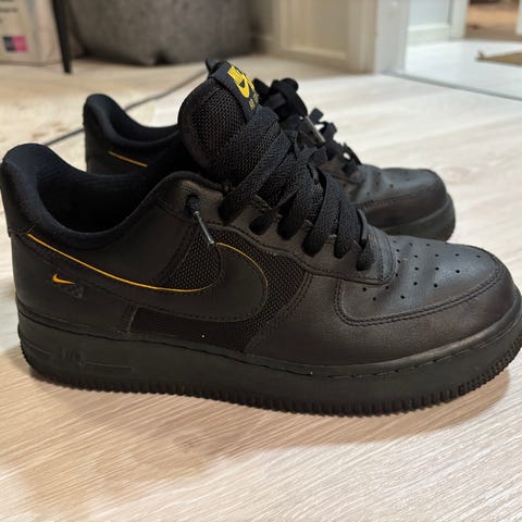 Nike Air Force 1 lenkkarit, koko 39. Väri valkoinen. Matala malli nauhakiinnityksellä. Päällinen sileää materiaalia, rei’itetty kärki hengittävyyden parantamiseksi. Pohja kuvioitu paremman pidon takaamiseksi. Sopivat arkikäyttöön ja vapaa-aikaan.