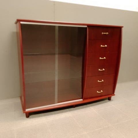 Sienälipasto, ylimmät lasiovet kirkasta lasia, alemmat huurteisia. Samaan sarjaan kuuluva vitriini myös myynnissä.