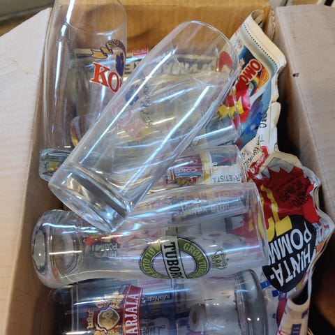 Kolme kappaletta pieniä maailmanmestari muovituoppeja ja alkuperäisessä pakkauksessa. Yksi tuoppi on paketista päätynyt hukkateille, mutta nämä kolme ovat olleet käyttämättöminä paketissa. Pieniä naarmuja on vuosien varrella näihin säilytyksen aikana tullut.