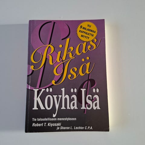 Robert T. Kiyosakin ja Sharon L. Lechterin teos "Rikas isä köyhä isä" on suomenkielinen kirja taloudellisesta menestyksestä ja henkilökohtaisesta taloudenhallinnasta. Kirja käsittelee varallisuuden rakentamista, tulojen ja menojen eroja sekä sijoittamiseen ja talousajatteluun liittyviä perusperiaatteita. Pehmeäkantinen painos, suomenkielinen teksti.