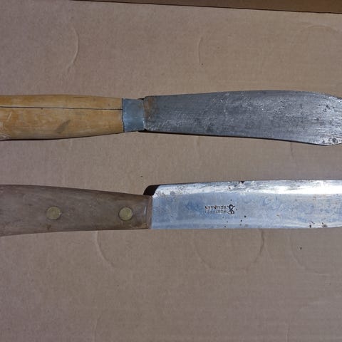 Kyseisen legendaarisen suomalaisen veitsisepän käsin takoma tuote. Hyvässä terässä ja ollut koristeena. Kunto uudenveroinen.