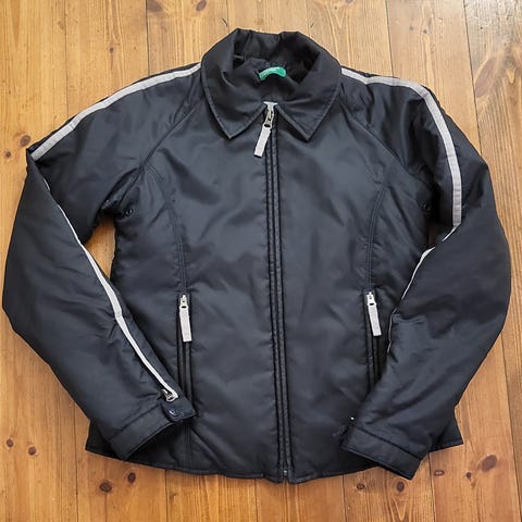Myydään pääosin ehjä ja siisti Benettonin sininen toppatakki. Oikean kainalon sauma on ratkennut (kuva), ei mene täytteisiin saakka vaan saumurin ulommainen ompele on ratkennut, helppo korjata. Pesty hajusteettomalla pesuaineella ja kuivattu pakkasessa.