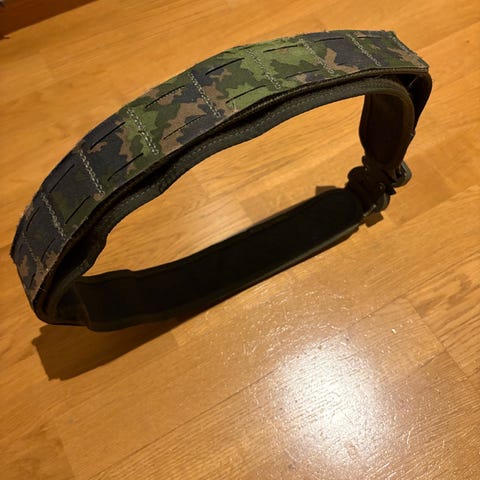 Varustelekan ampujanvyö. Kymmeniä kisoja pidetty ja siitä huolimatta täysin käyttökuntoinen. Koko G1 ja väri aina muodikas ranger green.