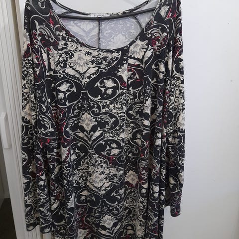 Impuls pusero naisille, koko L. Väriltään harmaa, edessä tumma kuviointi. Materiaali 100 % polyesteriä, kevyt ja laskeutuva. Lyhythihainen malli, takaa yksivärinen. Soveltuu arki- ja siistimpään pukeutumiseen muiden vaatteiden kanssa yhdisteltäväksi.postikulut ostajalle