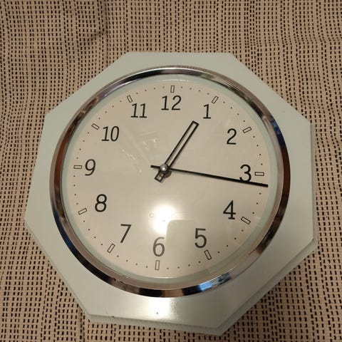 Vaalean vihreä seinäkello.