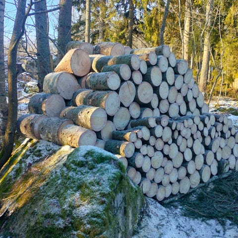 Kuvan kokoisia 33 cm pätkittyjä koivupölkkyjä klapin tekoon 5 kuutiota