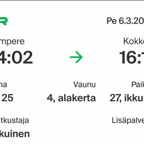 Sarjalippu 3 matkaa junalippu Tampere–Turku lapsi (voimassa 23.3. saakka)