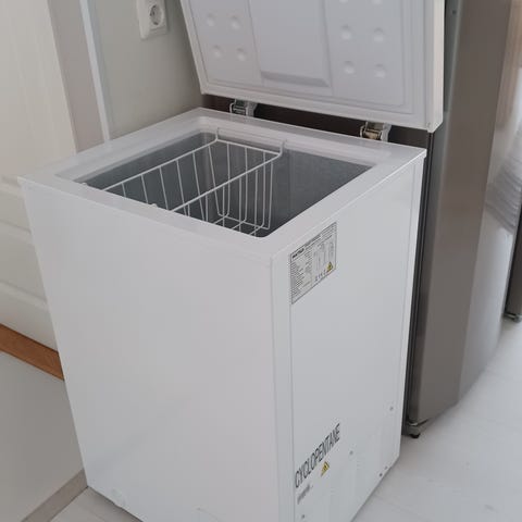 UPO pieni toimiva arkkupakastin isomman pakastimen alta pois