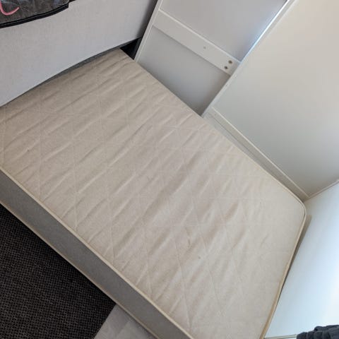 Annetaan 120cm runkopatja. Vain nouto ja omat kantajat, sängyn saa kuljetettua hissillä maan tasalle.