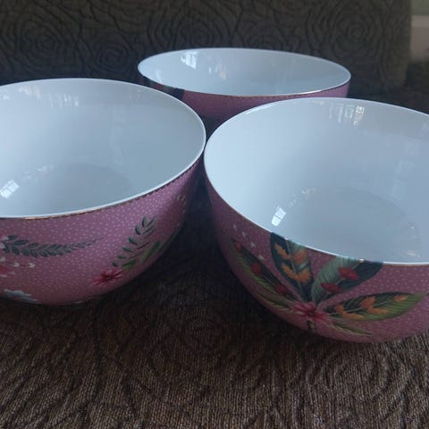 Pip Studio La Majorelle lautasia 3 kpl, 2 x 17,5 cm ja 1 pikkulautanen halk. 9 cm, käyttämättömät, myydään kaikki yhdessä 13 e