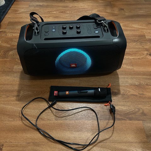 Kannettava JBL "partybox". Mukana latauspiuha ja langaton "karaoke" mikrofoni.
