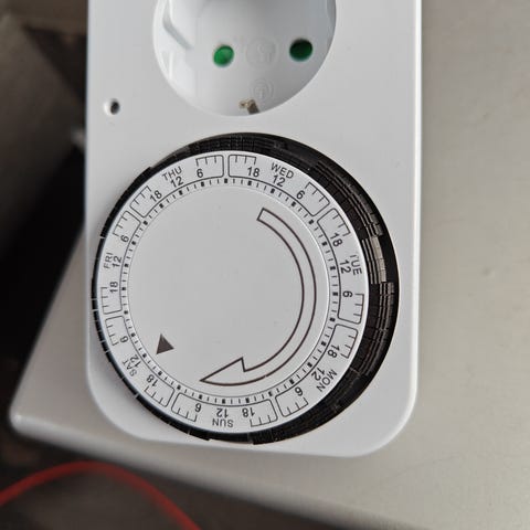 Oikein hyväkuntoinen ja toimiva Airamin ajastin. Voidaan käyttää niin ulkona kuin sisällä. Haluamansa käyttöajat voi säätää nuita sinisiä klipsuja nostamalla tai laskemalla. Ei ole ollut enää käyttöä jäänyt kaappiin pyörimään niin laitoin myyntiin.