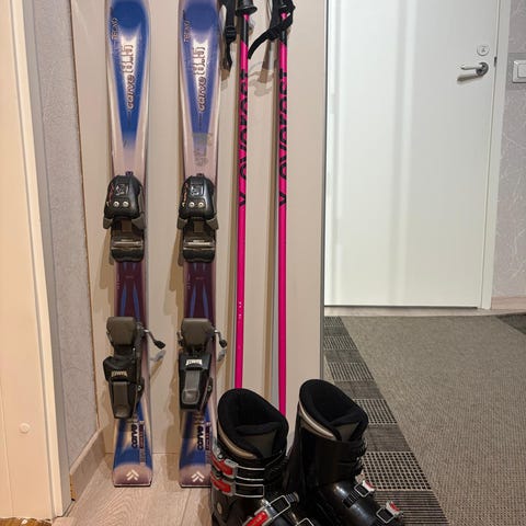 Lasten laskettelusetti (sukset 130 cm, monot 23 mondo (=n. 37), sauvat 100 cm)