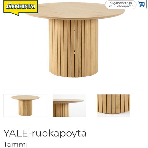 Myydään pyöreä pöytäryhmä. Pöytä 90cm halkaisijaltaan (3-jalkainen) ja 4 tuolia. Käytönjälkiä löytyy (kuvat). Haku Niinivaaralta.