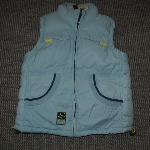 Myydään lasten kevyt toppaliivi Koko 130cm, pieni tahra edessä huomioitu hinnassa.