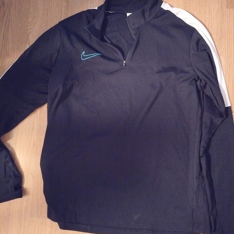 Nike Dri-Fit jalkapallopaita miehille. Koko S. Väri musta, vaaleat sivupaneelit. Tekninen Dri-Fit-materiaali, joka siirtää kosteutta ja hengittää. Lyhythihainen malli, sopii jalkapalloon ja muuhun urheiluun.
