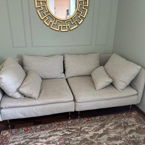 1:n istuttava osa, Viarp beige/ruskea, ehjä hyväkuntoinen, myös vaihdossa kulmapala pällisillä tai ilman päällisiä, tarjoa, nouto, lähelle erikseen mahdollinen kuljetus.