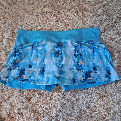 Adidas tennishame koossa S. Valkoinen, joustava vyötärö ja laskostettu helma. Sisäpuolella integroidut shortsit (ei erillisiä pallotaskuja, mutta pallot pysyvät lahkeissa hyvin muutenkin). Mitat pyydettäessä. Kuvatessa huomasin vyötärössä noin 1 cm purkauman päällisaumassa (kuva).