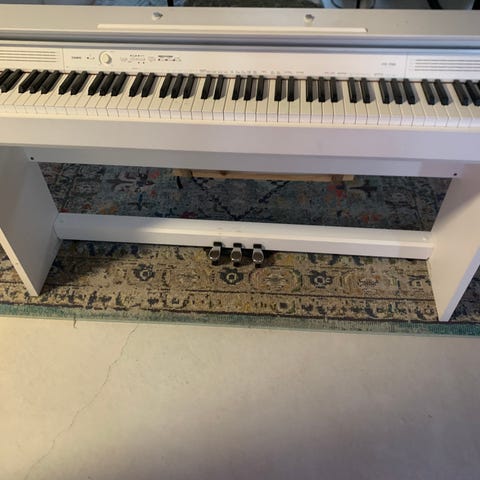 ** VARATTU** Casio celviano AP-270 digitaalipiano valkoisella viimeistelyllä. Soittimessa on täysikokoinen koskettimisto ja se on sijoitettu tukevalle jalustalle. Mukana on valkoinen, pehmustettu pianopenkki. Soveltuu kotiin harjoitteluun ja soittoon sekä aloittelijoille että pidempään soittaneille.