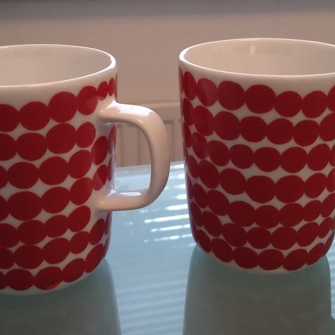 Marimekko Oiva Siirtolapuutarha mukit 6kpl, vetoisuus 2,5dl. Todella hyväkuntoiset, kaikkia ei ole edes käytetty.