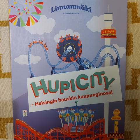 Linnanmäki HupiCity -lautapeli. Peli perustuu huvipuistoteemaan, jossa liikutaan pelilaudalla ja käytetään erilaisia pelimerkkejä, kortteja ja pystyyn koottavaa pyörivää pelivälinettä. Pakkaus sisältää pelilaudan, peliohjeet, kortteja, pyöreitä pelimerkkejä sekä koottavan peliosan. Peli soveltuu useammalle pelaajalle ja tarjoaa lautapelikokemuksen Linnanmäen huvipuistomaailmaan liittyvällä kuvituksella.
