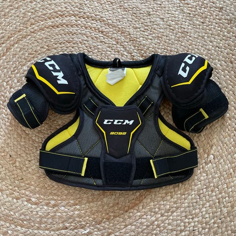CCM Tacks 9550 hartiasuoja /rintapanssari. Kokomerkintä 137 - 146 cm. Napakat tarrat, siisti ja hajuton. Väri musta. Ollut käytössä noin 8-9-vuotiaalla.