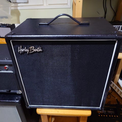 Palmer kaiutinkaappi sähkökitaralle, varustettu yhdellä 12" Celestion G12M Greenback -kaiutinelementillä. Tehonkesto 25 W ja impedanssi 8 ohm, bassoresonanssi 75 Hz. Avoin takarakenne, yläosassa kantokahva. Soveltuu käytettäväksi kitaravahvistimen kaiutinkaappina erilaisissa soitto- ja harjoitustilanteissa. Kotona käytetty, ei ole kuljeteltu mukana.