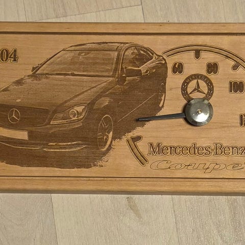 Mercedes-Benz puinen saunamittari autoaiheisella kaiverruksella
