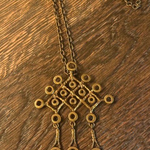 Molemmissa noin 65 cm ketju, pienempi riipus 1,5 x 4 cm ja isompi 6 x 6,5 cm.