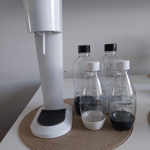 Myydään Sodastream -hiilihapotuslaite. Pakettiin kuuluu hiilihapotuslaite, yksi pullo korkkeineen ja kaasupullo. Kolme erilaista hiilihappovahvuutta.
