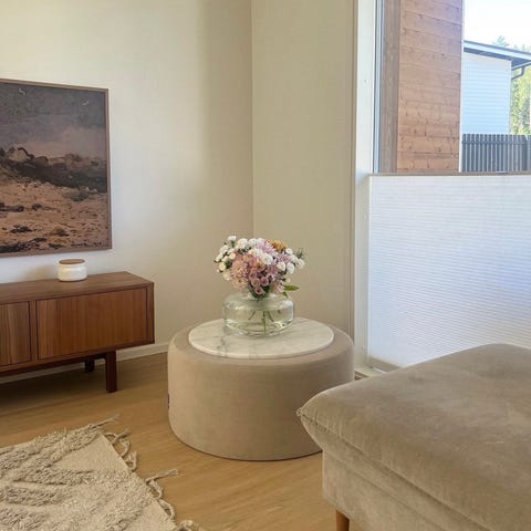 Kts lisäkuva josta näet, kun oikein tarkkaan katsot, pientä kissan kynnenjälkeä. Mistään kohtaa kangas ei ole rikki, ainoastaan kulunut, koska viihtyneet sen päällä. Tuon kankaan luonne on sellainen, että aina hieman epätasaisen näköinen, kun sitä silittää eri suuntiin.