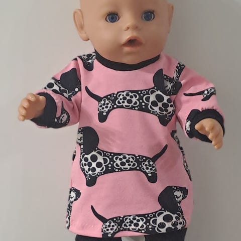 Itse huolellisesti ommeltu nuken asu, joka sopii 43 cm pituiselle Baby Born nukelle tai muulle vastaavan kokoiselle nukelle. Asun voi pestä koneessa (40 asteessa), kahden pisteen silitys.