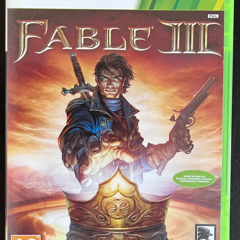 Microsoft Fable III Xbox 360 -peli. Toimintaroolipeli, joka on tarkoitettu Xbox 360 -konsolille. Ikäraja PEGI 16. Pelissä seikkaillaan fantasiamaailmassa ja tehdään tarinaan vaikuttavia valintoja. Fyysinen levypainos muovikotelossa.