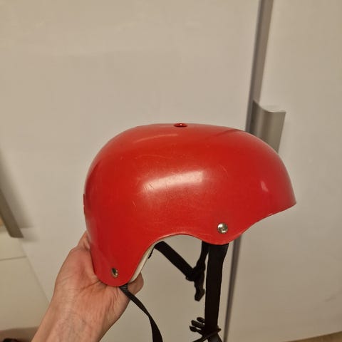 Kuvien mukaisessa kunnossa oleva kypärä. Hieman kulumaa ja naarmua, mutta isompia kopsuja ei ole tullut.