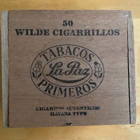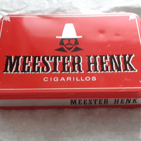Meester Henk Cigarillos peltirasia. Klassinen punainen kansi ja näyttävä vintage-grafiikka. Todella siisti.