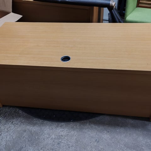 Isokokoinen ja jämäkkä neukkaripöytä. Kolmeosainen, jokaisessa osassa oma metallijalka. Pituus 3200, levys keskeltä 1200, levys päistä 800. Voi käyttää vaikka ilman keskipalaa yhdistelmällä vain päädyt. Korkeus 750.