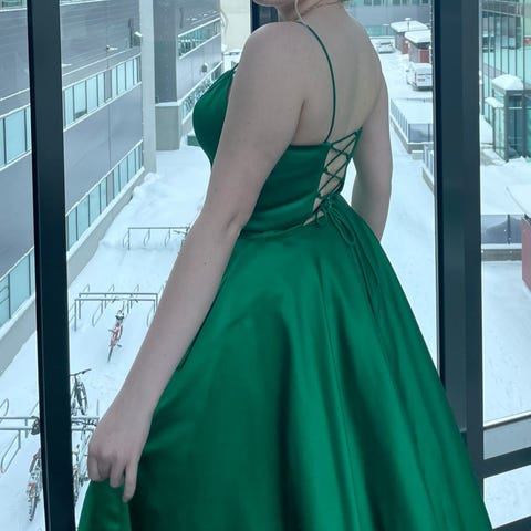 Yhdet vanhat tanssittu, ei ole lyhennetty eikä muokattu, alkuperäisessä mallissa. Tanssijan pituus oli n. 168 ja tennareissa 2 cm pohja. Vannehameen ansiosta mekko hipoi maata. Sopii siis pidemmällekin sekä lyhyemmälle, jos haluaa lyhentää/käyttää korkkareita. Koko pituus hartialta helmaan noin 154 cm, vyötärönympärys 2x38 cm (mitattu kun roikkuu henkarilla), kuppikoko C-kuppikokoa käyttävälle istui täydellisesti. Erittäin tukeva ja mukava sisäosa yläosassa. Mukaan vannehame, jonka yläosa istuu lantiolle täydellisesti ja on kevyt päällä. Mekon alkuperäinen hinta Zazabellassa 499€. Nyt mekko ja vannehame yhteensä 280€. Helmassa seitsemän kangaskerrosta/shifonkia ja satiinia. Saa tulla sovittamaan Hki/Lauttasaari matalalla kynnyksellä 🤩, koska tämä mekko haluaa tulla juhlakäyttöön mahdollisimman pian!!