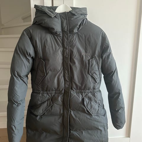Svea lämmin talvitakki unisex-mallia. Koko 150. Väri musta. Takissa on irrotettavahuppu, jossa tekoturkisreunus, sekä etutaskut ja etuvetoketju tuulilistan alla. Sisäpuolella on lämmin vuori ja kontrastivärinen oranssi vuorikangas alaosassa.