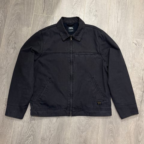 Zara miesten tikattu takki koossa L. Takin pääväri on sininen ja siinä on vaalea vetoketju edessä. Etuosassa on kirjailu “R.C. Vintage Rugby Cup 1964”. Takissa on timanttikuvioinen tikkipinta sekä ulko- että sisäpuolella. Helmassa ja hihansuissa on joustavat resorit, helmassa lisäksi raidallinen yksityiskohta. Sopii arkikäyttöön ja kevyeksi ulkotakiksi viileämpiin päiviin.