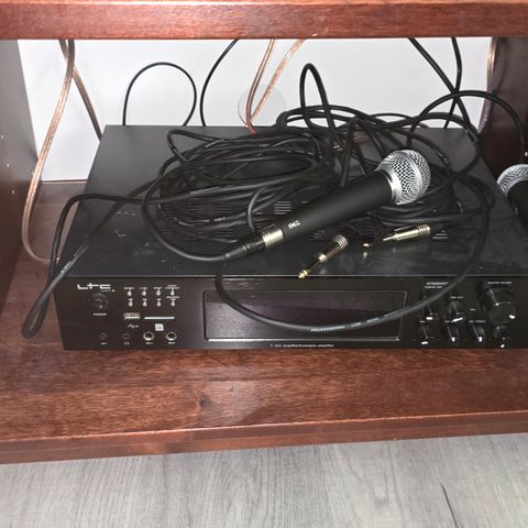 Karaokesoitin,kaukosäädin,virtajohto ja ulkoinen kiintolevy.