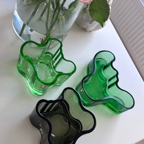 Iittala Aalto lasimaljakko. Tunnettu orgaaninen Aalto-muoto, useita eri värejä ja kokoja. Sopii esimerkiksi kukkamaljakoksi, tarjoiluastiaksi tai sisustuskoristeeksi pöydälle tai ikkunalaudalle. Valmistettu värillisestä ja kirkkaasta lasista.