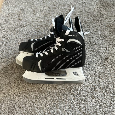 Maple jääkiekkoluistimet, koko 40. Väri musta valkoisilla yksityiskohdilla. Teräkotelo ja terät metallia, runko synteettistä materiaalia. Nauhakiinnitys. Soveltuvat jääkiekkokäyttöön ja yleiseen luisteluun jäähalleissa tai ulkojäällä.