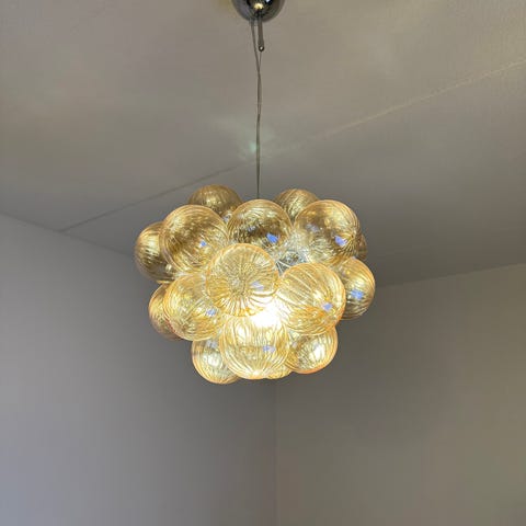 Tästä uuden veroinen lasinen riippuvalaisin puoleen hintaan tuosta eli 180 eur.