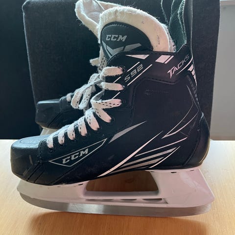 CCM jääkiekkoluistimet lapsille, koko 38. Väri musta-valkoinen. Luistimet soveltuvat jääkiekkoon ja yleiseen luisteluun. Perinteinen nauhakiinnitys ja teräkiskot jääkiekkokäyttöön. Koko vastaa noin lasten kengännumeroa 38.