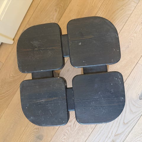 Apila -jakkara, valmistajalta Keravan puusepäntehdas. Jakkarassa on alkuperäinen tummanvihreä väri. Jakkara on vanha ja siinä on ajan patinaa.