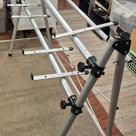 König & Meyer kosketinsoitinteline. Metallinen, musta teline, jossa kaksi rinnakkaista poikkiputkea soittimen kannatteluun. Soveltuu kosketinsoittimen tai syntetisaattorin tukevaksi alustaksi. Teline sijoitetaan lattialle, ja sen rakenne on suunniteltu pitämään soitin vakaana soitettaessa.