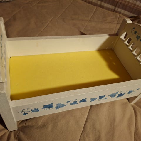 Moitteettomassa kunnossa oleva puinen nukkejen sänky.