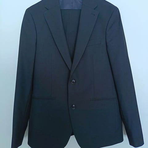 Dressmann Slim Fit miesten musta puku: takki koko 48, housut koko 32/34